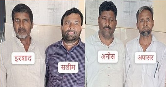 गिरफ्तार आरोपियों में इरशाद पुत्र इलियास निवासी ग्राम जिसोरी,अनीश पुत्र इदरीश,सलीम पुत्र इदरीश,अफसर पुत्र तरीकत (सभी निवासी ग्राम जिसोरी, थाना मुंडाली) शामिल हैं।