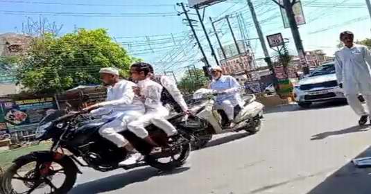 स्टंटबाजी और जानलेवा लापरवाही ईद के इस मौके पर दुपहिया वाहनों पर सवार युवा, खासकर किशोर अपनी और दूसरों की जान को जोखिम में डालते दिखे। एक बाइक पर तीन से लेकर पांच-छह सवार तक नजर आए, जो तेज रफ्तार में सड़कों पर स्टंटबाजी कर रहे थे। इनमें से अधिकतर किशोर बिना हेलमेट और बिना किसी डर के खतरनाक करतब दिखाते देखे गए।