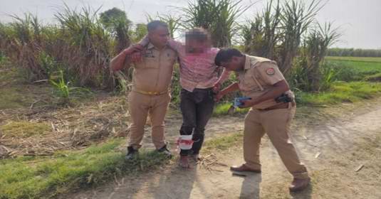 हत्या के इस संगीन मामले को गंभीरता से लेते हुए पुलिस ने फरार अभियुक्त की तलाश में विशेष अभियान चलाया। गठित पुलिस टीम फलावदा रोड पर संदिग्ध व्यक्ति और वाहनों की चेकिंग कर रही थी। इस दौरान एक संदिग्ध व्यक्ति पैदल आता हुआ दिखाई दिया, जो पुलिस को देखकर ईंख के खेत में छिपने लगा। संदेह होने पर पुलिस टीम तुरंत मौके पर पहुंची, लेकिन तभी अभियुक्त ने पुलिस पर जान से मारने की नीयत से फायरिंग कर दी। पुलिस टीम ने आत्मरक्षार्थ जवाबी फायरिंग की, जिसमें अभियुक्त घायल हो गया।